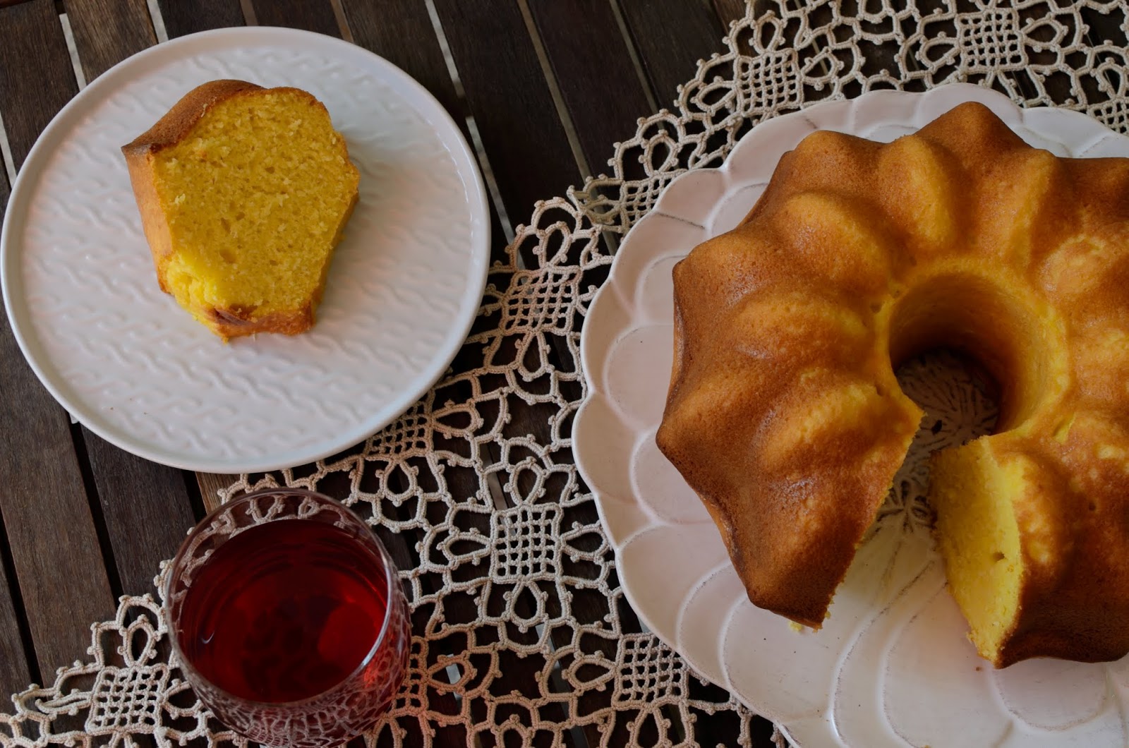 Apareceu com o titulo Bolo de coco e laranja no liquidificador, não podia ser melhor.